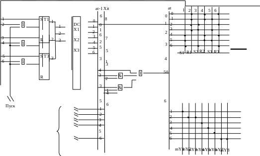 Вихідна частина. Ця частина будується на основі системи рівнянь виходів. Тут виконується той самий процес, що й у перехідній частині, тільки сигнали подаються на вихідну шину Yt, з якої сигнал надходить до вихідної матриці.