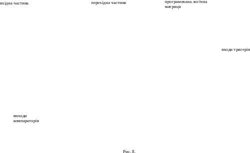 У вхідній частині розташовані три (3) D-тригери, три (3) логічних елементи АБО, на які подається вхідний сигнал, декодер та дві шини, одна з яких необхідна для передачі сигналів, які надходять з декодера, а інша - для сигналів з виходів компаратора.