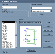 Размещение символа компонента на схеме начинается с указания имени компонента в панели диалога, открывающейся по команде Draw/ Place Part (рис. 2), далее необходимо выбрать компонент и разместить выбранный компонент на экране при помощи "мыши"
