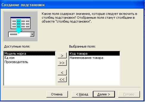 Еще один «Метод подстановки» получает данные из другой таблицы. К «списку» создается связь на поле другой таблицы и оттуда берутся необходимые данные.