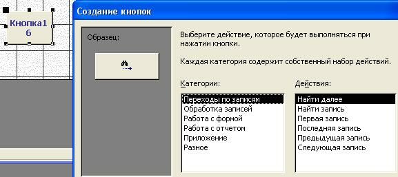 Так же созданы кнопки перехода по записям, открытия отчета, и кнопка закрытия формы.