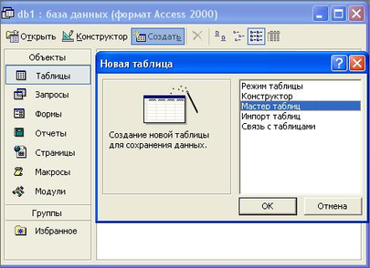 Access позволяет создавать структуру таблицы в трех режимах – в режиме конструктора, с помощью мастера и путем ввода данных. Разница предполагает использование этих средств пользователями с разным уровнем подготовки, разными целями и перспективами использования данных.