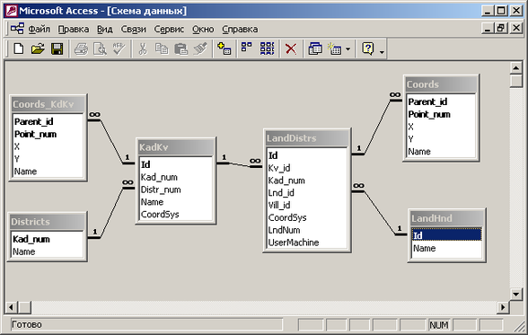 Это удобный графический инструмент, позволяющий создавать связи между определенными полями таблиц, задавать различные типы отношений, устанавливать ограничения ссылочной целостности. При этом изменения сразу применяются в базе данных (естественно, если содержащиеся данные удовлетворяют всем условиям) Полученную диаграмму таблиц и связей можно распечатать, что, несомненно, удобно для разработчика.