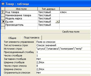 Для упрощения ввода повторяющихся данных используем в «Типе данных», пункт «Мастер подстановок»