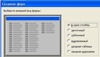Форма – это специальный объект-контейнер для других интерфейсных компонентов, таких как поля ввода и отображения данных, кнопки и др. На форме разработчик располагает компоненты для ввода, корректировки, просмотра и группировки данных, в зависимости от специфики приложения. Форму также можно создать двумя способами – в режиме конструктора и с помощью мастера. В первом случае разработчик располагает набором компонентов (при необходимости можно зарегистрировать свои ActiveX), которые свободно размещает на форме и задает их параметры. В режиме мастера пользователь просто выбирает таблицу, поля и стиль оформления, а форма генерируется автоматически.
