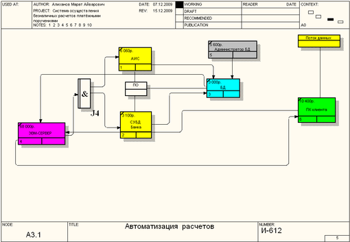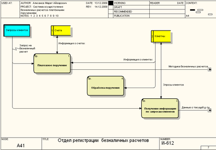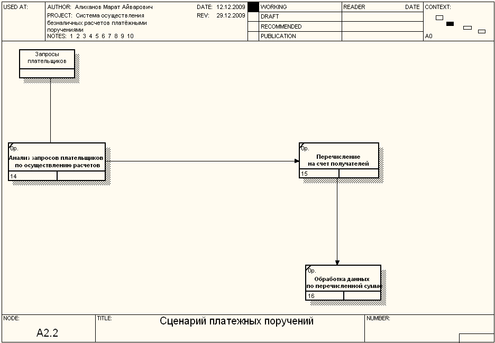 удалить работы, стрелки и перекрестки, не входящие в сценарий. На рисунке 6 показана диаграмма сценария под номером А2.2 созданная на основе диаграммы IDEF3 "Сценарий платежных поручений".