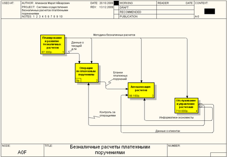Методология IDEF3 в работе была использована при декомпозиции работы "Операции по платежным поручениям" и "Автоматизация расчетов". Диаграмма декомпозиции "Операции по платежным поручениям" состоит из следующих работ: