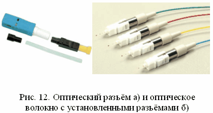 используют специальные разъёмы (рис. 12), обеспечивающие точность совмещения двух сегментов оптического волокна.