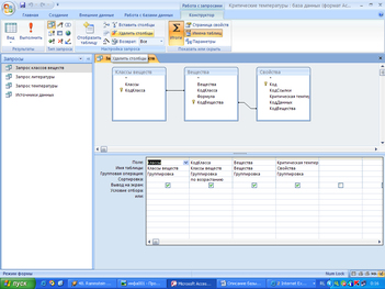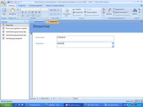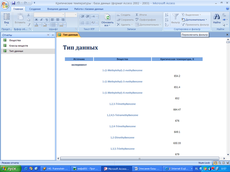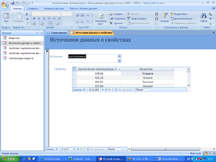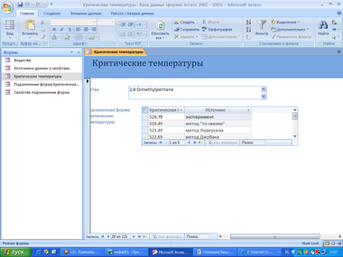 Создание базы данных критических свойств веществ в редакторе баз данных MS Acsess