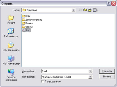 Выберите пункт «Открыть» в меню Файл или кнопку «Открыть» на панели инструментов. В появившемся диалоговом окне выберите имя открываемого файла. Таблица базы данных будет загружена из выбранного файла. Также вы можете сформировать свою базу данных путем добавления записей.