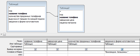 Затем, в столбце под названием «Сведения о фирме-изготовителе» и в строке «Условие отбора» пишем страну. Например, Финляндия. Хельсинки.