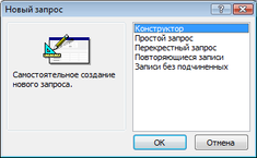 2) В окне Новый запрос выбрать режим Конструктор и щелкнем Ок.