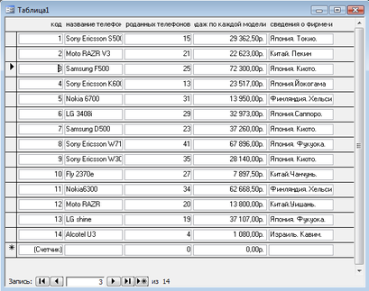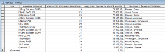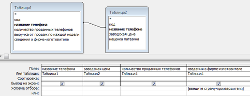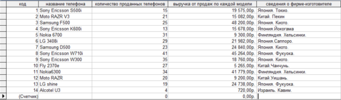 Например, мы вводим страну-изготовителя. И в таблице выводится список телефонов, произведенных в указанном месте.