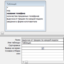 2) Из данной таблицы в запрос включаем только поле Выручка от продаж по каждой модели.