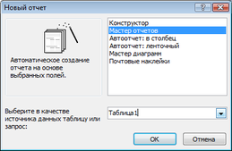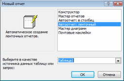2) В окне Новый отчет выделим Автоотчет: ленточный, выберем в качестве источника данных Таблицу1 и щелкнем на кнопке Ок, после этого у нас отобразится созданный отчет.