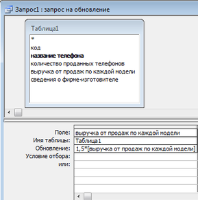 В ячейку строки Обновление поля Выручка от продаж по каждой модели вводим выражение 1,5*[Выручка от продаж по каждой модели].