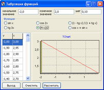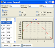 Табуляция функции означает создать таблицу, в которой для каждого значения аргумента вычислено соответствующее значение функции.