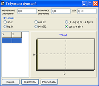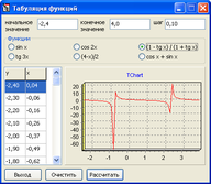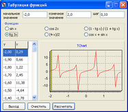 Итогом работы можно считать созданную программу табуляции функций. Созданная программная реализация может служить органической частью решения более сложных задач.