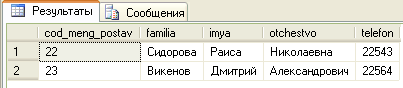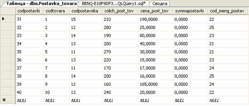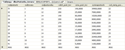 exec Izmenenie @kod = 35 select * from Postavka_tovara