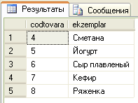 1. Товар, выбранный по коду в диапазоне от 4 до 8