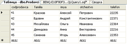 insert into Prodavci values (41, 'Краснов', 'Алексей', 'Петрович', 22235)