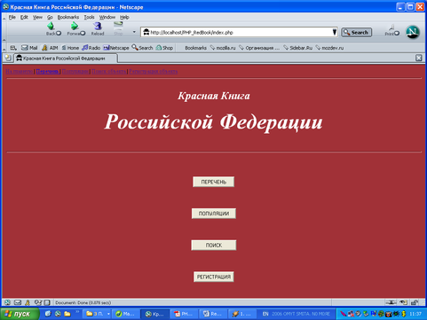 Чтобы ознакомиться со списком занесенных в базу животных и растений, следует выбрать ссылку "ПЕРЕЧЕНЬ" для перехода к соответствующей странице.