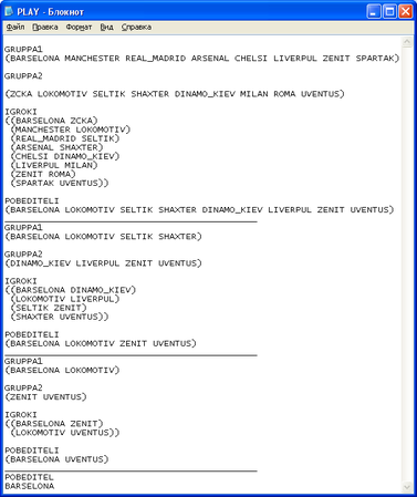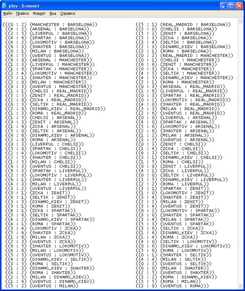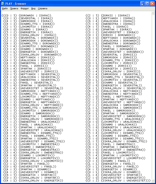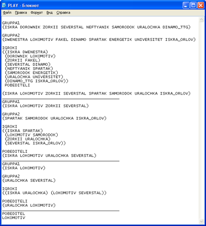 Итогом работы можно считать созданную функциональную модель составления расписания встреч участников соревнований. Данная модель применима к круговой и олимпийской системе проведения спортивных соревнований. Созданная функциональная модель и ее программная реализация могут служить органической частью решения более сложных задач.