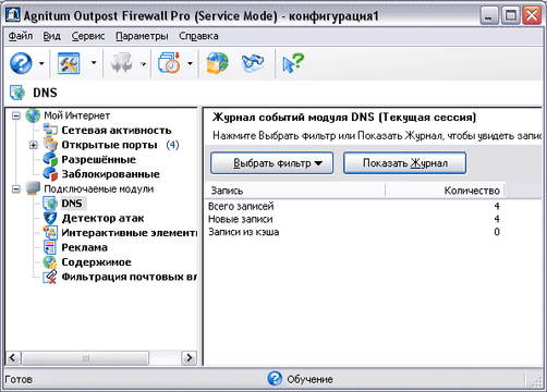 Рис.12 Модуль "Служба доменных систем" фаервола Outpost