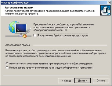 1) в режиме автоматического (интеллектуального) создания правил для приложений