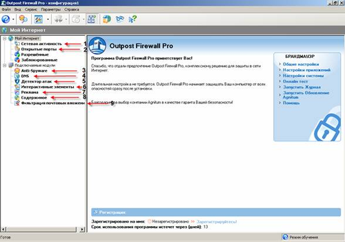 Agnitum Outpost Firewall имеет следующие основные функции: