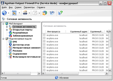 Рис.10 Модуль "Сетевая активность" фаервола Outpost