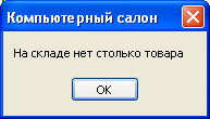 При нажатии кнопки "Выбрать товар", если на складе нет товара, то выводится следующее сообщение (Рис.18.4)