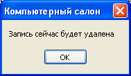 При нажатии кнопки "Удалить запись" на главной форме программы в любом из подразделов выводится следующее сообщение (Рис.18.3)