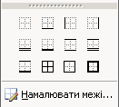 “Границя” і у вікні границь виберемо необхідний вигляд контуру виділеного блоку клітин.