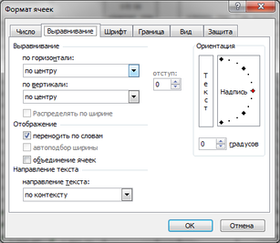 Наприклад, для вирівнювання голівки таблиці по центру необхідно її виділити (A10: L10) і скористатися на панелі інструментів Формат / Клітинки... / вибрати вкладку Вирівнювання і у вікні команди встановити: положення “По горизонталі - по центру", “По вертикалі - по центру” і поставити прапорець на “Відображення - переносити по словах”.