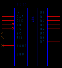 Варіантом передбачено використання 12ти розрядного швидко-діючого АЦП послідовного наближення, працюючого із ТТЛ-рівнями. Так як дана мікросхема не має окремого блоку цифрового керування, то включення АЦП до шини даних проводиться завдяки регістру К1810ИР82. Нижче наведено УГП MAX201В (іноземний аналог).