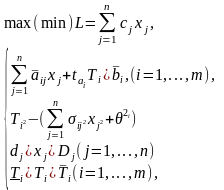 • о т детерминированных значений aij, bi выполнен переход к математическим ожиданиям случайных величин aij, bi;