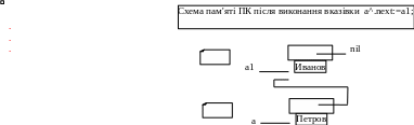 ісля виконання вказівки a^:=10 (або a^:=b^) напрям вказівника a не змінюється, змінюється значення динамічної змінної (в нашому випадку зміниться значення змінної за адресою 1: замість 5 там буде міститися 10)