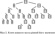 Сформуємо дерево керуючись таким принципом: ключ кожного лівого потомка менший за ключ предка, а ключ правого потомка – більший або рівний ключа предка.
