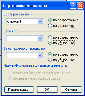 Выбрать в раскрывающемся списке поля Сортировать по Строка 1.