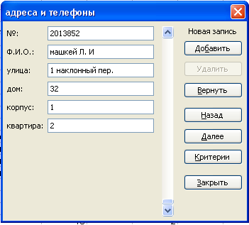 Щелкнуть кнопку Закрыть и убедится, что новая запись добавлена в конец базы данных.