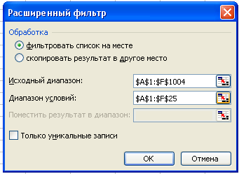 выбрать команду Данные Фильтр Расширенный фильтр. Откроется диалоговое окно Расширенный фильтр.