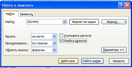при необходимости установить флажки проверки Учитывать регистр и Ячейка целиком;