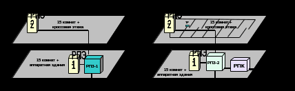 м, общая толщина перекрытий составляет 40 см. Коридор шириной 3 м проходит по всей длине продольной оси здания. В коридорах имеется подвесной потолок с высотой свободного пространства 30 см, в некоторых помещениях здания подвесного потолка нет. РПЗ-1 совмещен с РПЭ-1 в одном помещении для здания №1 и РПЗ-1 совмещен с РПЭ-1 и РПК тоже в одном помещении для здания №2.