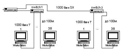 Физический интерфейс 1000Base-SX будем использовать в подсистеме внутренних и внешних магистралей, а интерфейс 1000Base-T в горизонтальной подсистеме СКС.
