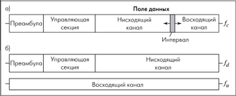Структура кадра в стандарте IEEE 802.16 для систем с временным (а) и частотным (б) дуплексированием каналов