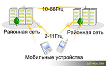 Новый документ – это компиляция уже существующих стандартов, однако с достаточно серьезными изменениями и уточнениями в отдельных главах. Главным образом они затронули главы, входившие ранее в IEEE 802.16a. Стандарт описывает принципы построения сетей регионального масштаба в диапазонах до 66 ГГц – точнее, их физический и канальный уровни. Для этого предусмотрено пять режимов (см табл. 2). Из них только WirelessMAN-SC предназначен для работы в диапазоне 10-66 ГГц. Он ориентирован на магистральные сети («точка-точка», «точка-многоточка»), работающие в режиме прямой видимости (так как затухание столь высокочастотных сигналов при отражении очень велико) с типичными скоростями потока данных 120 Мбит/с и шириной канала порядка 25 МГц. Это фактически описанный в документе IEEE 802.16-2001 радиоинтерфейс широкополосного доступа с модуляцией одной несущей на канал (SC21), который рассматривался выше.