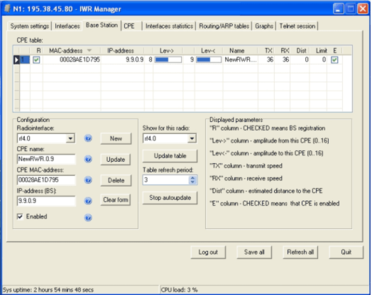 Система управления сетью (Рисунок 2.18 ) (Network Monitoring/Management System – NMS) предназначена для мониторинга сети в реальном времени с целью оперативного управления. Система базируется на программных средствах управления и мониторинга сетей типа HP OpenView, WhatsUp и т.п. и обеспечивает графическое представление карты сети и параметров БС, АС и РС. Помимо этого NMS позволяет вести системный журнал и планировать события с помощью планировщика. В состав системы также включен IWR Manager для настройки оборудования, реализующий в простой и интуитивно понятной форме основные настройки активных устройств сети. Для тонкой настройки используется командный язык системы SkyMAN. Основа серии – новая аппаратная платформа, основанная на мощном процессоре IBM PowerPC с тактовой частотой 200-400 МГц.