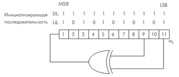 В нисходящем потоке генератор ПСП инициализируется начальным заполнением