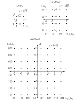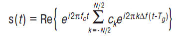 - комплексное представление символа квадратурной модуляции (QAM-символа). Комплексное представление удобно, поскольку генерация радиосигнала происходит с помощью квадратурного модулятора в соответствии с выражением
